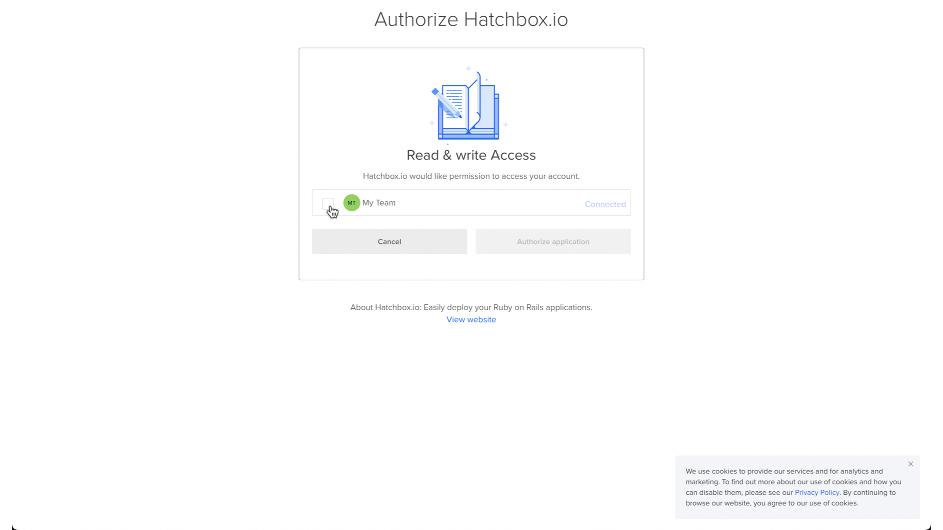This will take us to a DigitalOcean OAuth page where we authorize Hatchbox for whichever DigitalOcean team account we want.