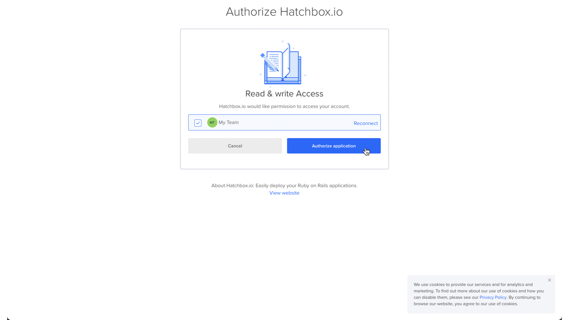 We then need to connect our DigitalOcean account, to grant Hatchbox the ability to manage our DigitalOcean droplets on our behalf.