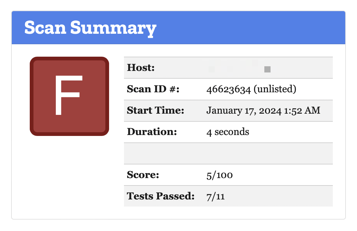 Then, when I ran Mozilla’s Observatory analysis, I got an F 😭.