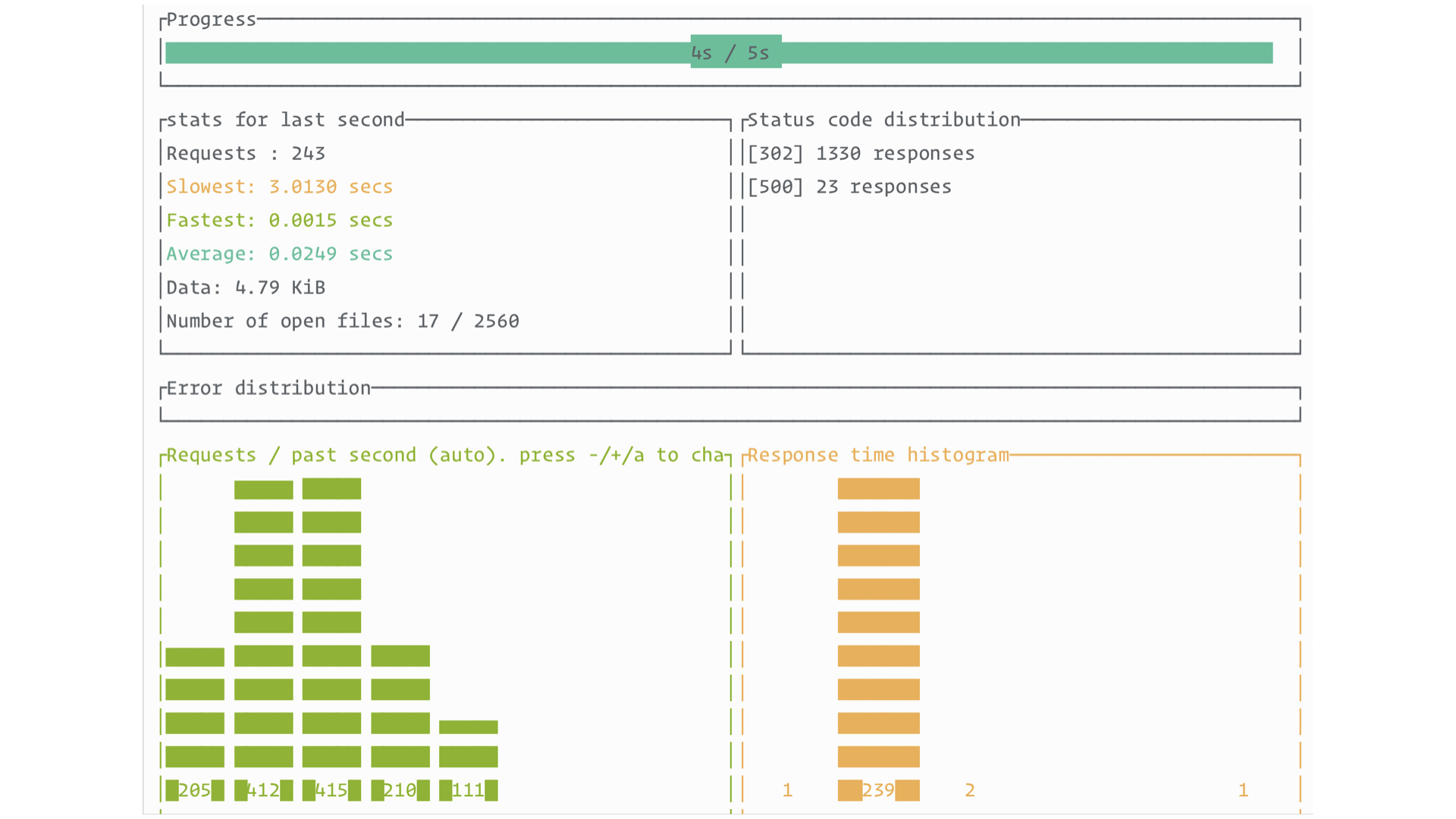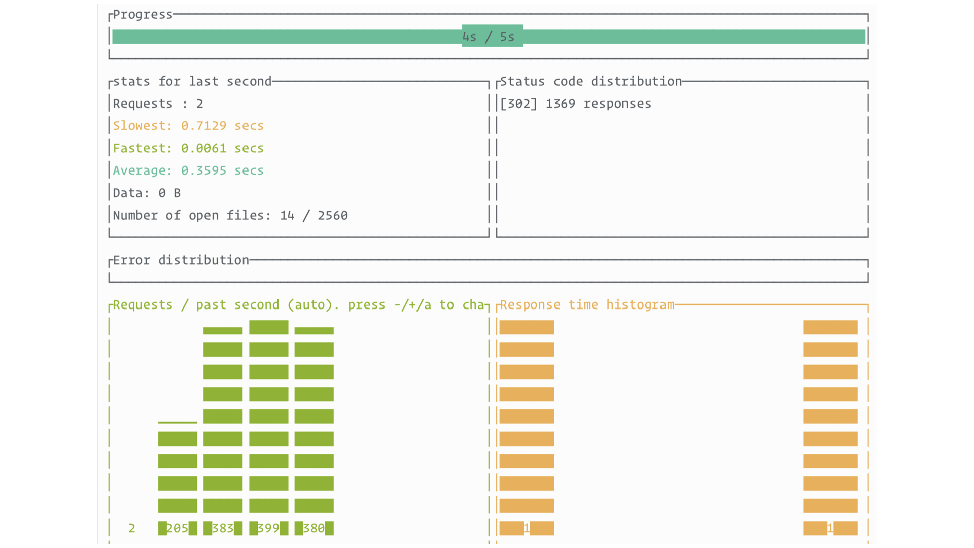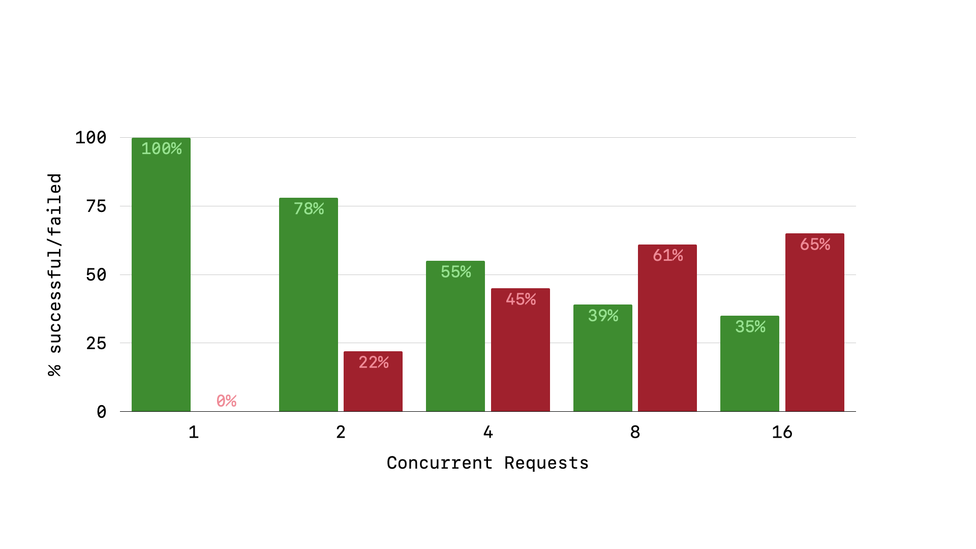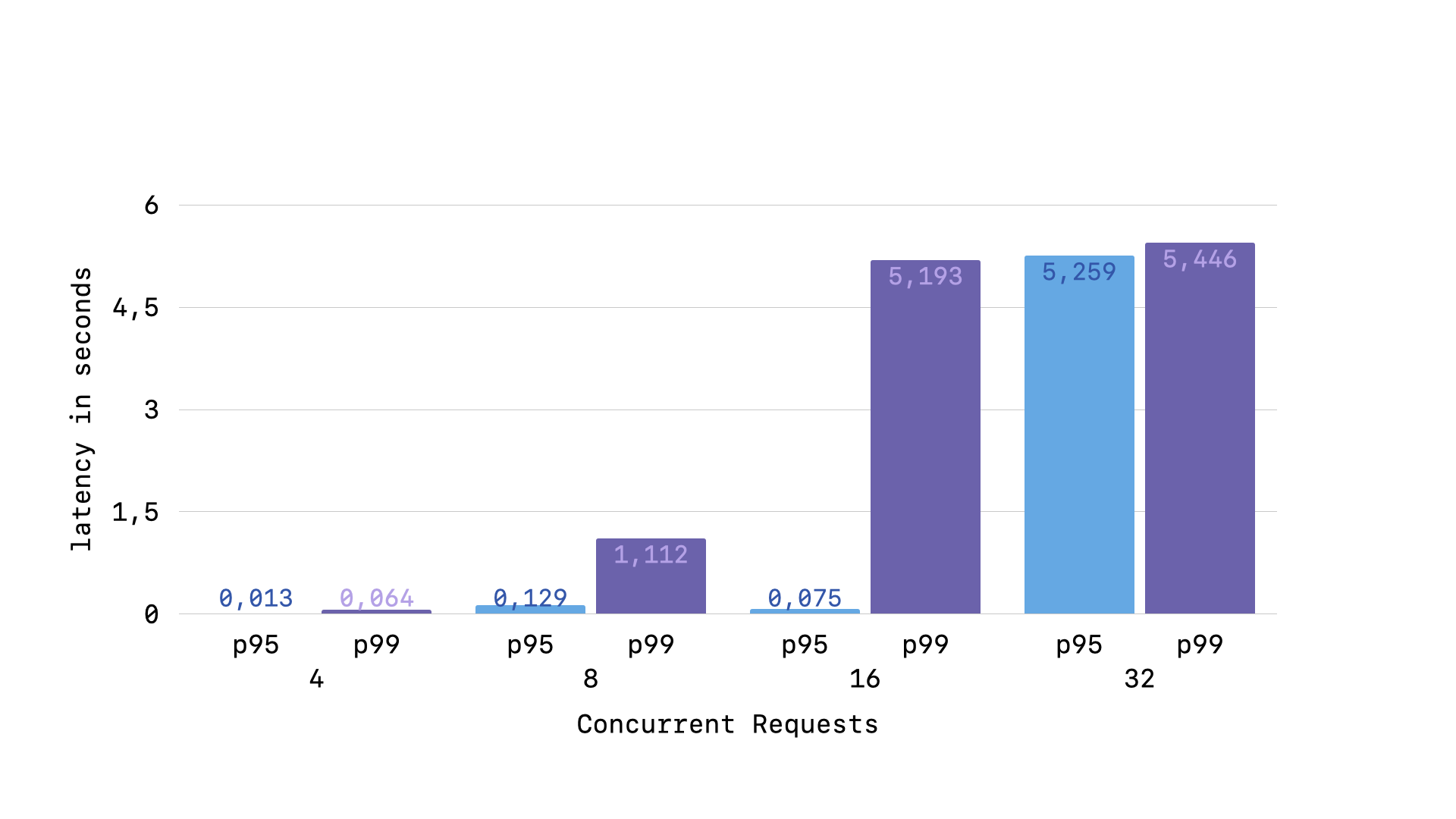 Let’s try the same load test but send 4 concurrent requests in waves for 5 seconds.