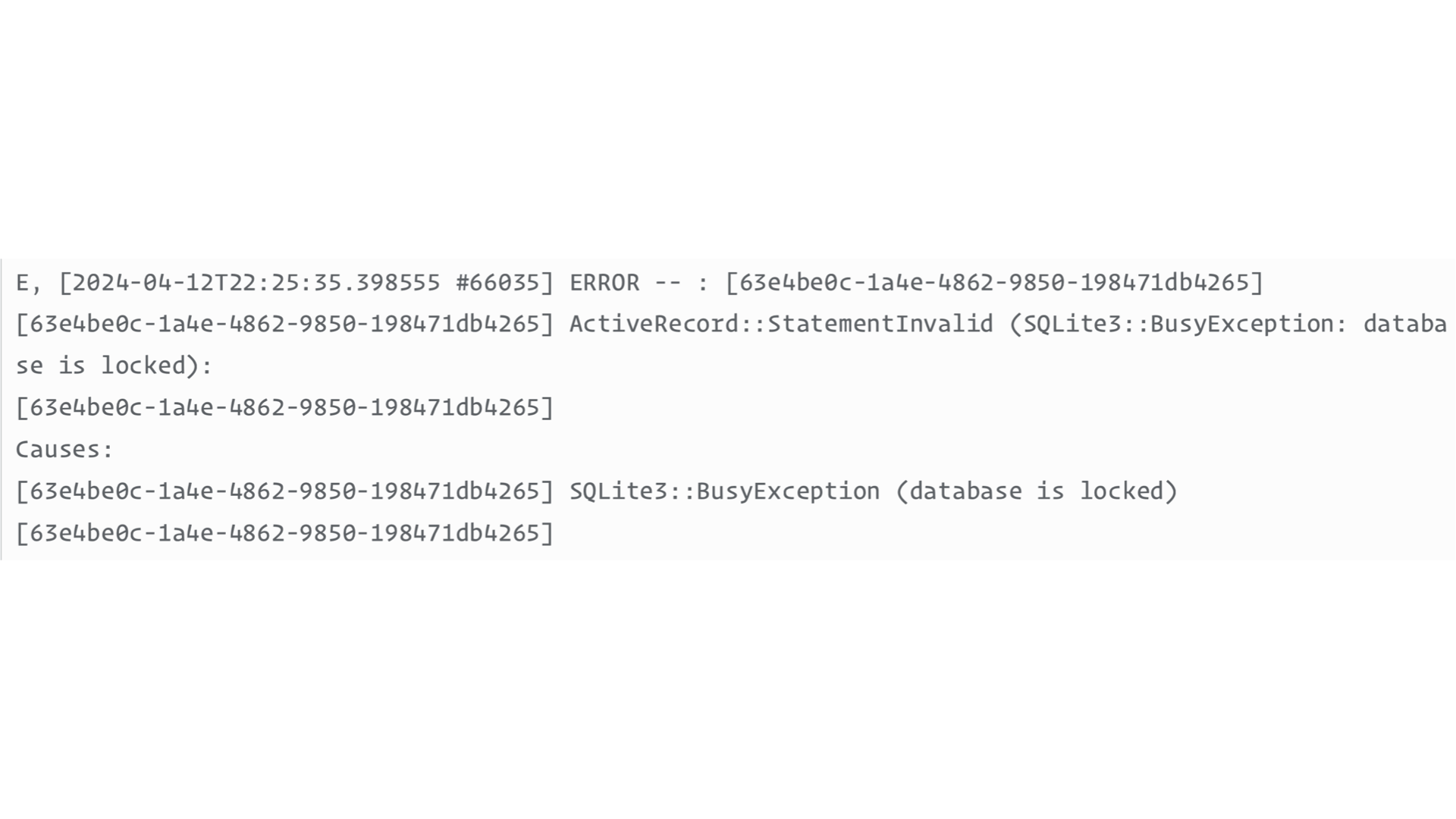 If we look at our logs, we will see the first major problem that SQLite on Rails applications need to tackle …
