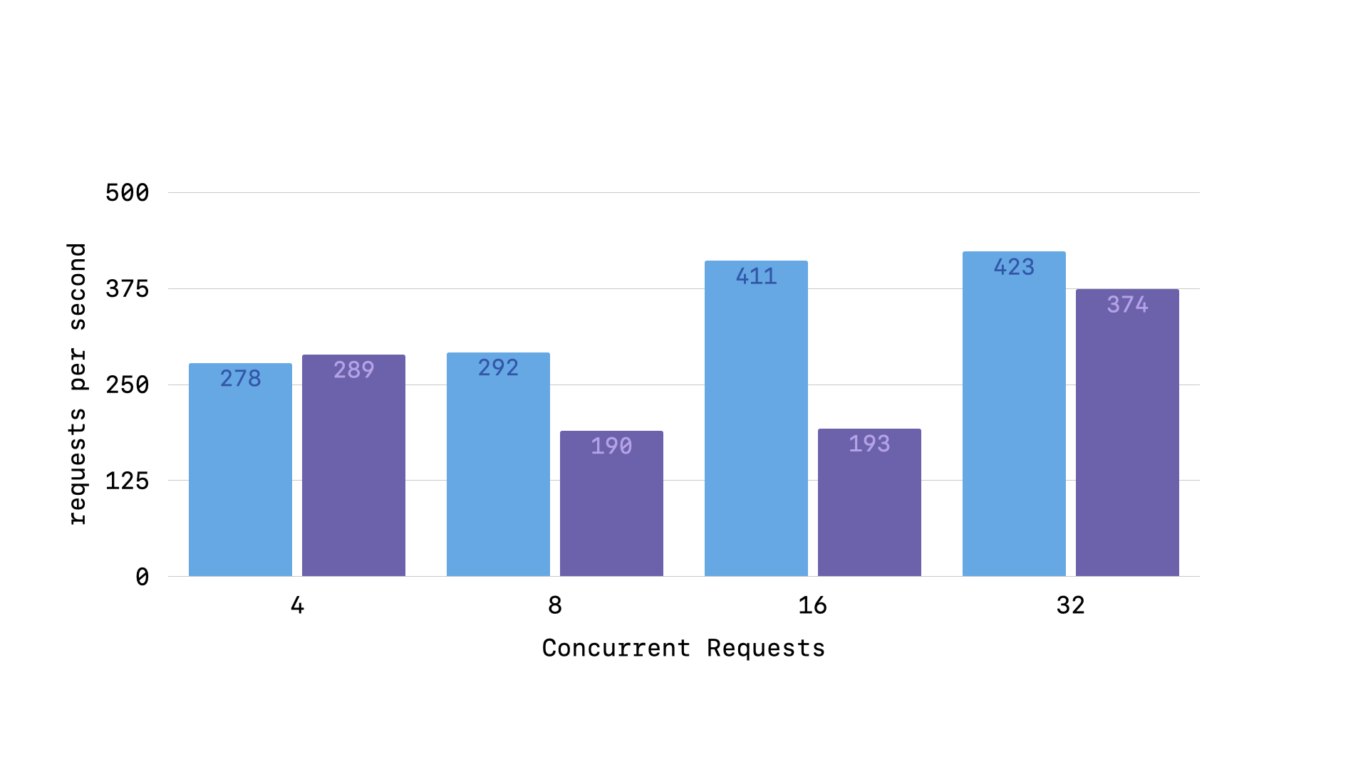 Taken together, these changes enable our “deferred requests” utilizing isolated connection pools. And when testing against the comment create endpoint, we do see a performance improvement when looking at simple requests per second.